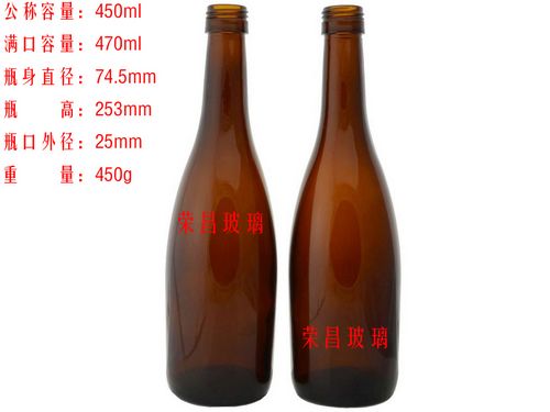 450ml酵素瓶詳細參數(shù)如下:公稱容量:450ml,滿口容量:470ml,瓶身直徑:74.5mm,瓶高:253mm,瓶口外徑:25mm,重量:450g。